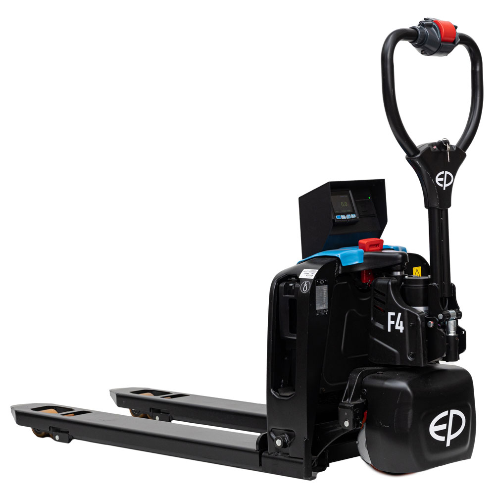 Transpalet Electric F4 1500 kg cu cantar, cel mai nou model din gama a fost proiectat pentru utilizare pe toate tipurile de suprafete.