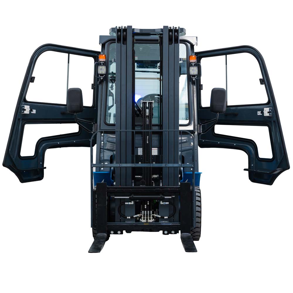 Designul modern al cabinei, combinat cu un catarg care ofera o vizibilitate extinsa, permite o supraveghere clara a incarcaturii si a spatiului de lucru. Supapa de amortizare a catargului protejeaza furcile de impactul cu solul.
